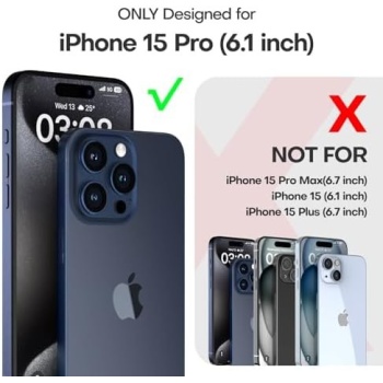 TAURI 5 in 1 for iPhone 15 Pro Case Clear, [Not-Yellowing] with 2X Screen