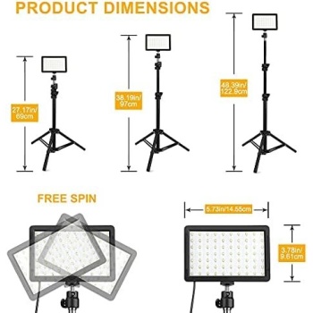 3 Packs 70 LED Video Light with Adjustable Tripod Stand/Color Filters