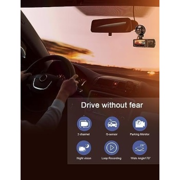 3 Channel Dash Cam Front and Rear Inside Dash Camera for Cars 2K+1080P+1080P