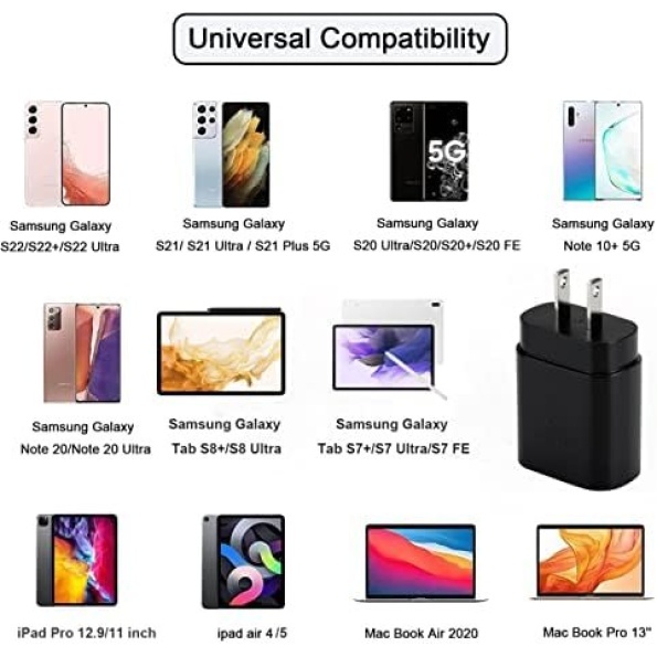 - Universal Type C Charger Adaptor: Optimized charge Compatible with Samsung for S22, S22 Plus, S22 Ultra, S21, S21 Ultra, S21 Plus, S21+, S20, S20 Ultra, S20+, Note 20, Note 20 Plus, Note 20+, Note 10, Note 10 Plus, S10, S10 Plus, S10e, Tab A7,A8, iPhone 13, 13 Pro, Pro Max, Mini, iPhone 14, 14 Pro, 14 Pro Max, 13, 13 Pro, 13 Pro Max, 12, SE,11, Pad Pro 2018, 2020, 2021, 2022, Pad Air 5,4, 3, 2, also provide full speed charging for other USB C devices
