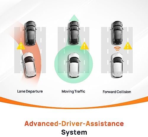 - ADAS System Featured Dash Cam: The Advanced Driving-Assistance System (ADAS) detects your surroundings and has real-time voice alerts to warn you of safety problems. The camera automatically detects lane markings and gives voice alerts when the car is drifting out of the lane. The dash cam also identifies the vehicle ahead and calculates the speed and distance of the car in front to prevent forward collisions while driving