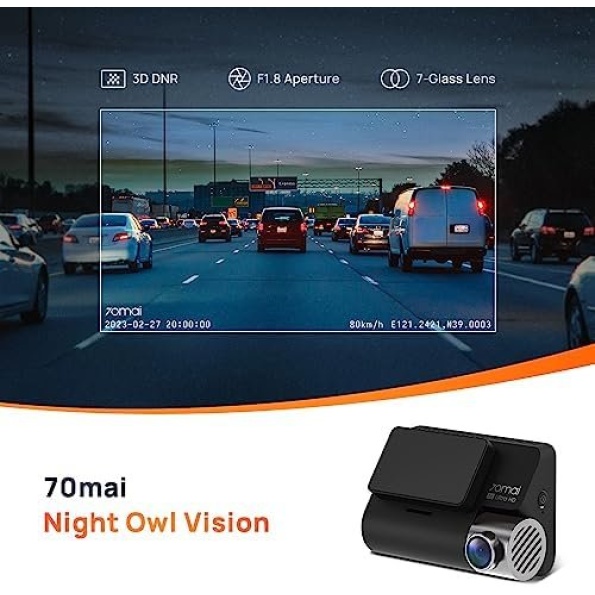 - Powerful Night Vision: 4K dash cam A800S delivers excellent low-light performance that exceeds the traditional 3.3x. With 3D DNR (Dynamic Noise Reduction) technology and full 7-Glass/F1.8 aperture lens, the camera minimizes image noise. A dash cam that can be used with confidence at any time of the day or in certain weather conditions