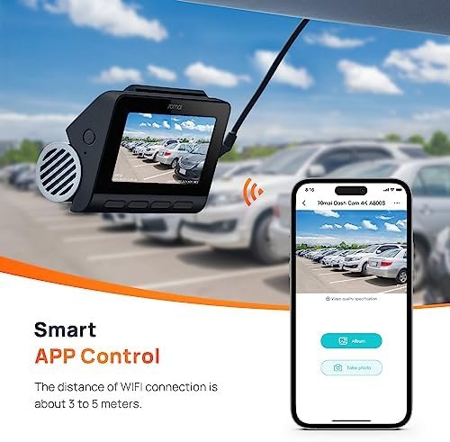 - In-app Control & Footage Sharing: Sharing is not a problem anymore with the dash cam 4K A800S, the 70mai App supports both iOS & Android systems, allowing you to view and download videos via Wi-Fi hotspot connection. In case of an accident, you can simply share the footage with your insurance provider for a more efficient claims process. Also, this function enables you to achieve continuous OTA updates by automatically fixing bugs and updating software