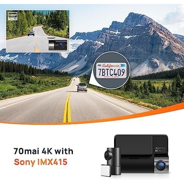 70mai True 4K Dash Cam A800S with Sony IMX415, Front and Rear, Built in GPS