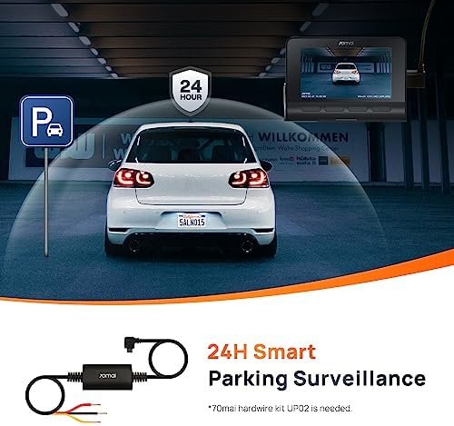 - 24-Hour Parking Surveillance: Keep monitoring when you leave your car, the G-sensor automatically detects sudden shakes or collisions and starts recording, providing critical evidence for every important moment for 24h. In the event of an accident, you’ll receive a notification to check the event footage in the 70mai app. 70mai Hardwire Kit UP02 (B08R5SBKZR, not included) is required for parking mode