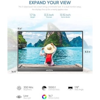 ARZOPA Portable Monitor, 15.6” 1080P FHD Laptop Monitor USB C HDMI Computer