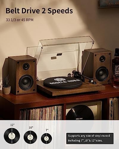 - More features: Quieter belt-driven, built-in Bluetooth 4.2 input for playing your music from other mobile devices(digital music), built-In phono preamp and RCA line output, stable iron platter for educing vibration, adjustable counterweight force to avoid skipping and distortion, 2 speeds(33 1/3 & 45RPM), easy to install and use.