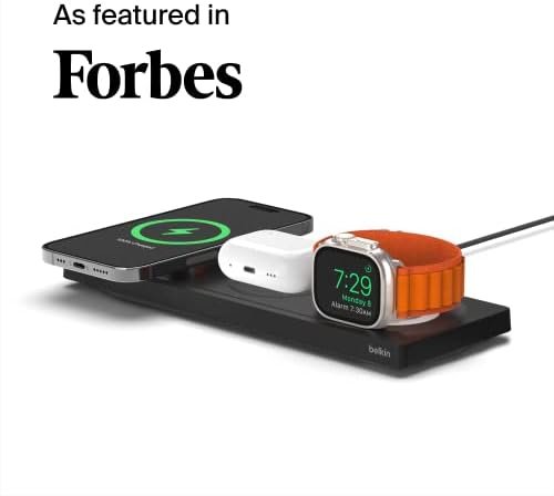 - 3-IN-1 CHARGER: Power your apple ecosystem with this Belkin 3-in-1 Wireless iPhone Charger Pad. It is the perfect charging station for multiple Apple devices, including iPhone 15, 14, 13 and 12, Pro & Pro Max, Apple Watch, and AirPods