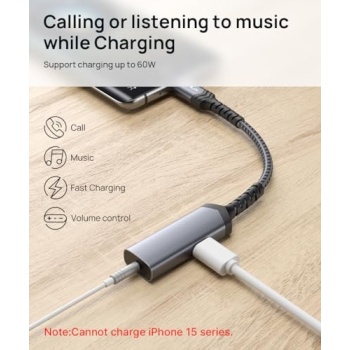 JSAUX USB C to 3.5mm Headphone and Charger Adapter,2-in-1 AUX Mic Jack