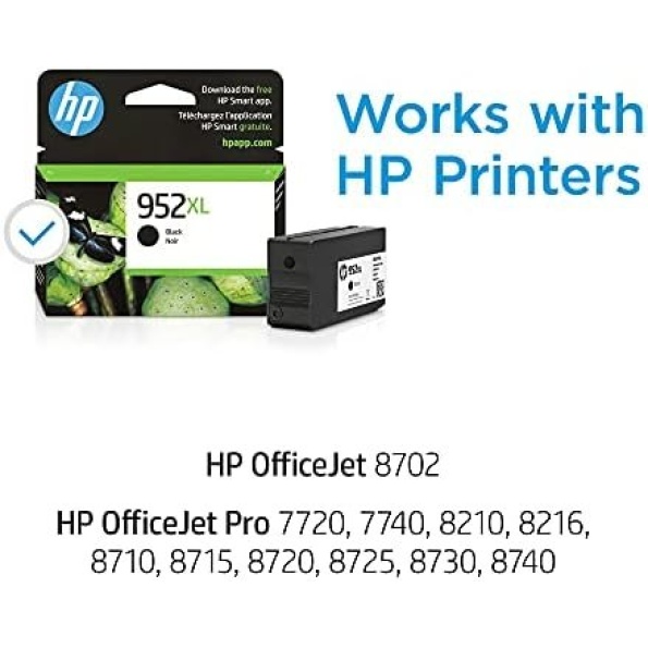 HP 952XL Black High-yield Ink Cartridge | Works with HP OfficeJet 8702, HP