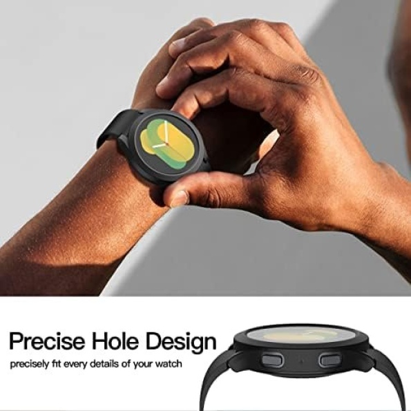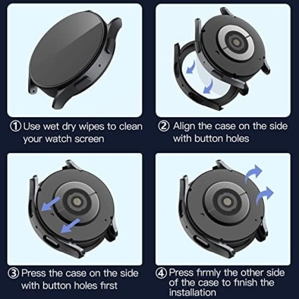 - Package include: 2 x Black case with HD tempered glass screen protector for Galaxy Watch 5&4 40mm. NOTE: This case is not waterproof, so if you need to swim or dive, please take off the case. If there is water mositure in the case, you could take off the case and wipe it.: