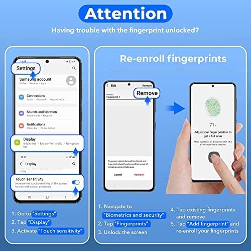- Sensitive Touch Screen: The s22 ultra protection supports fingerprint unlocking in one second, and the precise positioning design makes the protector perfectly compatible with the fingerprint sensor of the screen, ensuring a quick response.
