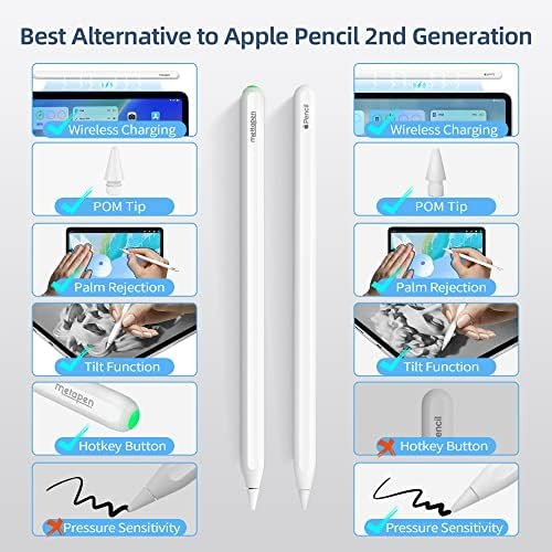 • iPad Pencil A14, Unlock Your Creativity: Experience the 0.1mm incredible precision, quick responsiveness & palm rejection of Metapen iPad Stylus Pen A14 without any lag or breakpoints to immersively learn without interruption. iPad Pen A14 is also a perfect gift for anyone who loves to explore their artistic talents, it is a must-have for beginners.