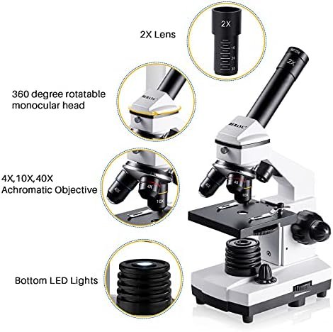 - [Practical Educational Tool] This 100X-2000X biological microscope is designed to help students/kids/adults/beginner/amateur scientist/hobbyists exploring the fantastic world of the life. It is ideal for school,laboratory or home teaching, one-on-one instruction.