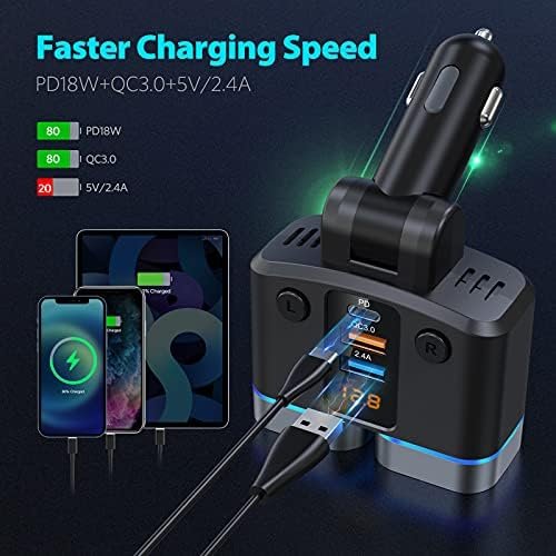 - 150W Output & Independent Switches: : The 2 cigarette lighter sockets feature independent ON/OFF switches. You don’t need to unplug the car charger adapter repeatedly. Based on a total output power up to 150W, the cig-lighter can provide the maximum charging speed for various devices.