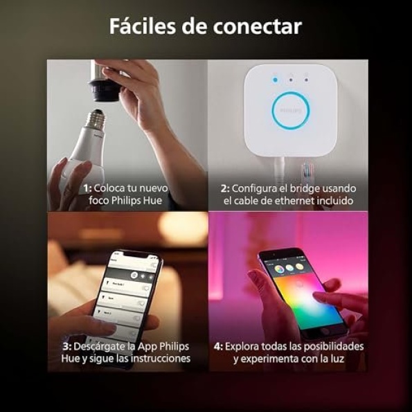 - AUTOMATE IN THE APP – Schedule your lights to turn on and off. Set up an automation once, and the Bridge remembers what you want your lights to do.