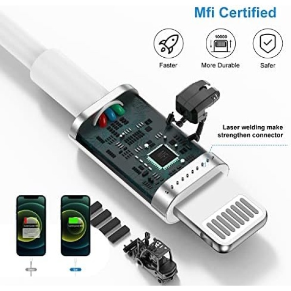 - iPhone charger cable are made of high purity copper core and smart intelligent chip with overcharge protection, stable current protection, automatic switching and battery protection, which can support up to 2.4A fast charging