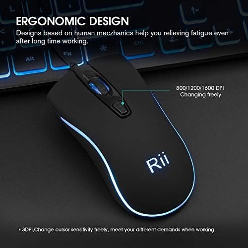 Rii Three Colors Backlit Business Keyboard,Gaming Keyboard and Mouse Combo
