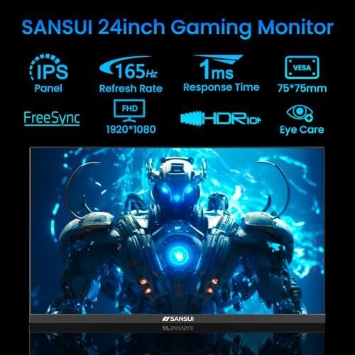 SANSUI 165Hz Gaming Monitor 24 inch, DP x1 HDMI x2 Ports IPS FHD Computer