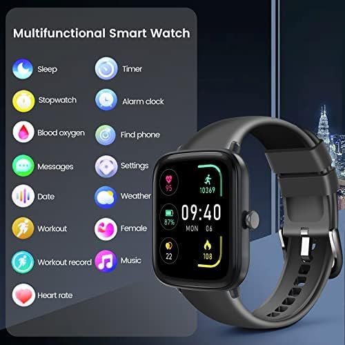 - Your Smart Assistant – This android smart watch includes more useful features, fitness tracker, pedometer, heart rate monitor, sleep monitor, 20 exercise modes, blood oxygen monitor, call notifications, SMS, and APP messages (note: you cannot reply to messages through the watch), music and camera controls, weather display, sedentary and water reminders, stopwatch, timer, calculator, alarm clock, etc. Meet your daily needs