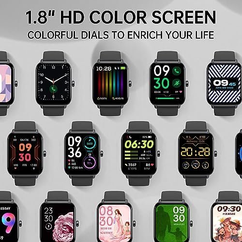 - Large 1.8-inch screen and 100+ dials: Equipped with 1.8″ HD curved screen, our smart watch utilizes 3D curved scratch-resistant glass, which is highly resistant to wear and tear, and the screen is clearer, giving you more peace of mind when using the watch.